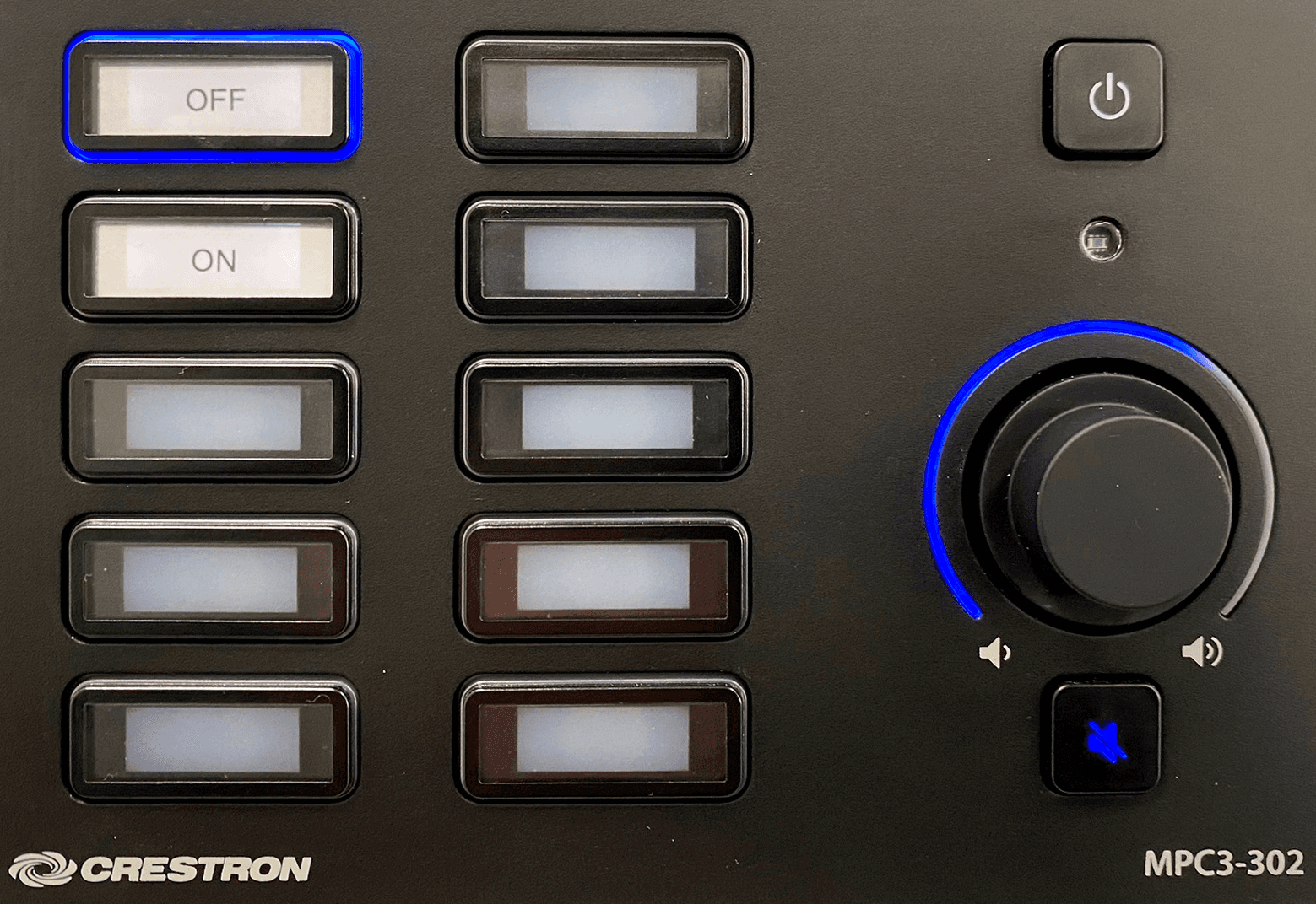 - A wall panel to start the projector and display the teacher's desk screen. View the projector screen.