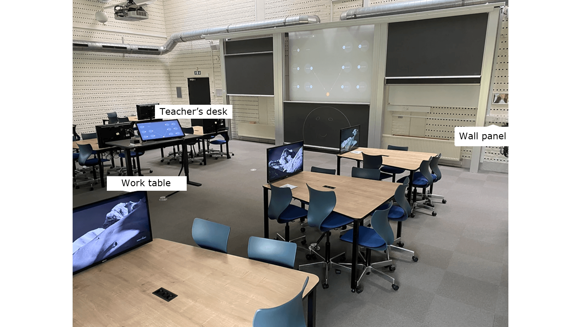 The image below shows an Active learning space room. All corresponding rooms are equipped with: