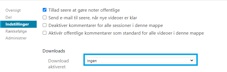 - Under the menu item settings, you will be able to see different settings for the Panopto folder that corresponds to the Moodel course